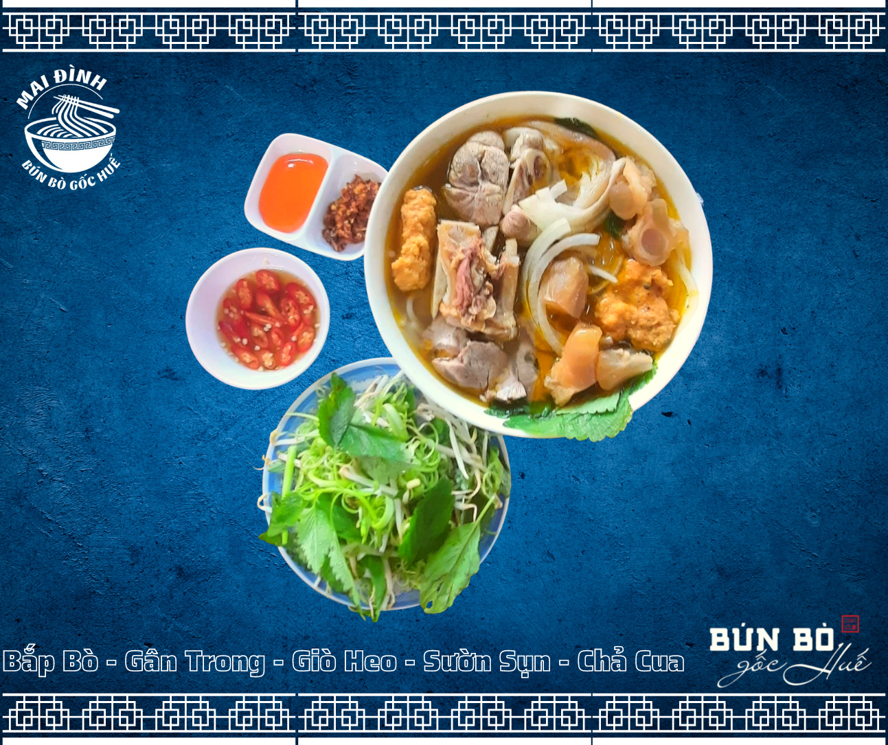 BÚN BÒ GỐC HUẾ ĐẶC BIỆT MAI ĐÌNH - BÚN BẮP BÒ GÂN TRONG GIÒ HEO SƯỜN SỤN CHẢ CUA